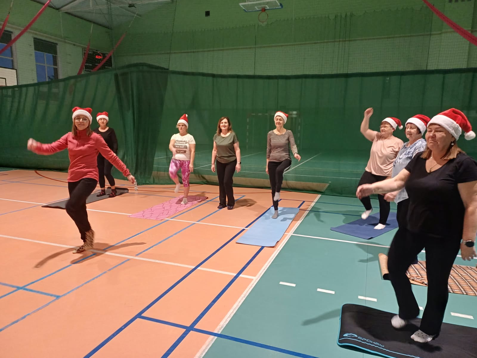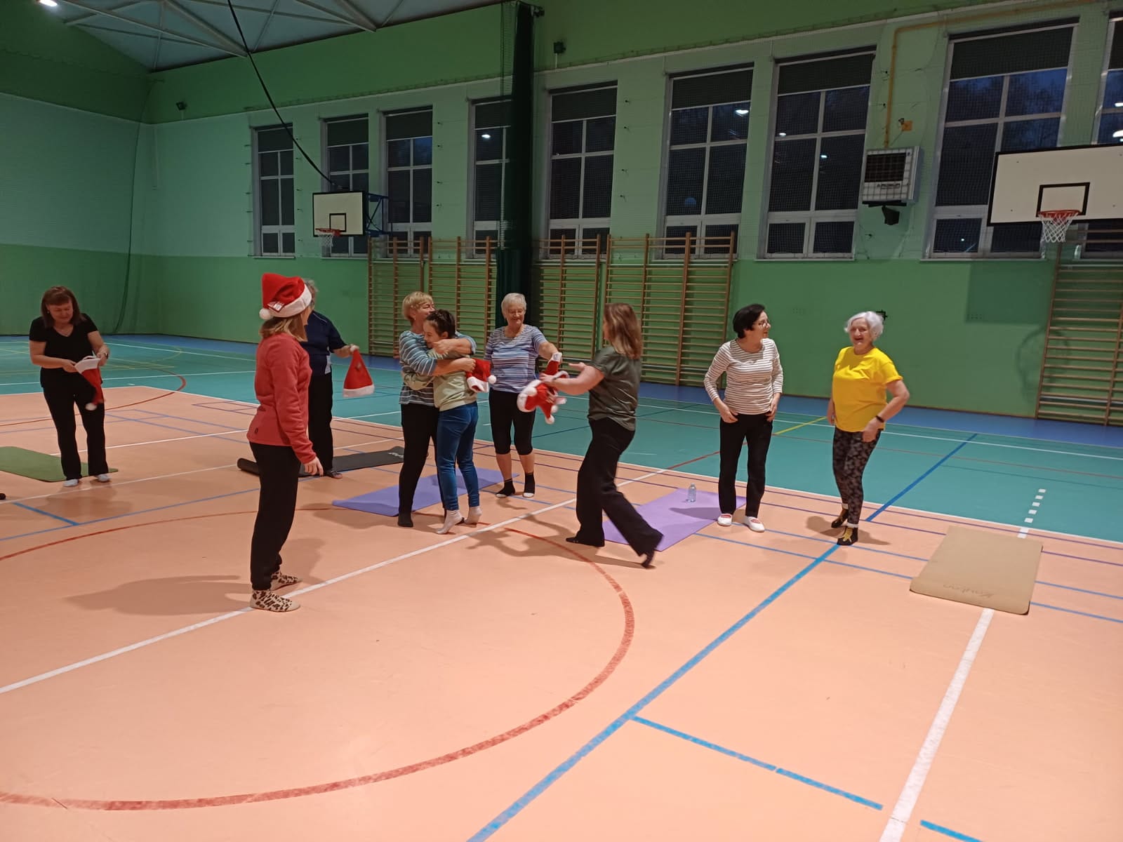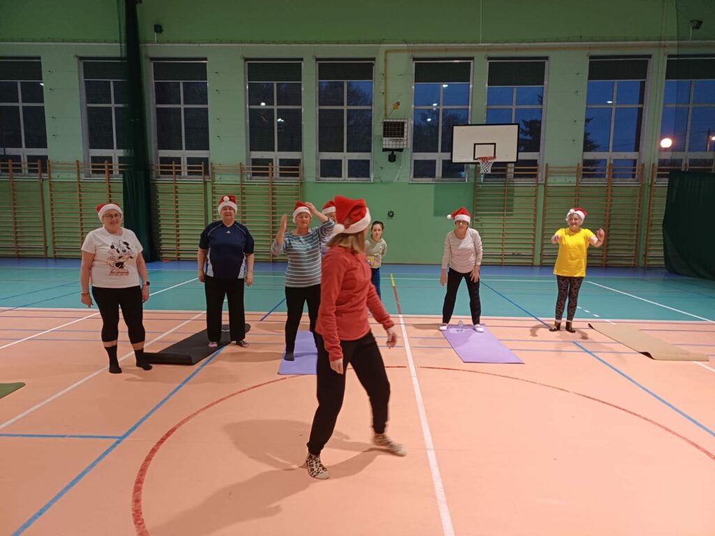 Nawet podczas „mikołajkowej” gimnastyki relaksacyjnej, prowadzonej przez panią Karolinę, frekwencja dopisała. Uczestnicy z dużym zaangażowaniem i entuzjazmem poddali się „reżimowi” ćwiczeń, czerpiąc radość zarówno z aktywności fizycznej, jak i ze wspólnie spędzonego czasu. Dobra atmosfera i pozytywna energia spotkania zapowiadają kontynuację zajęć – ciąg dalszy już za tydzień!